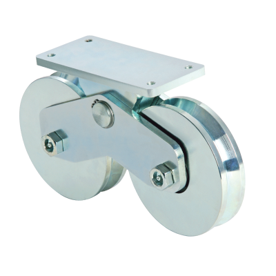 Su unión entre ruedas, tiene un sistema que amortigua el impacto del porton en movimiento
